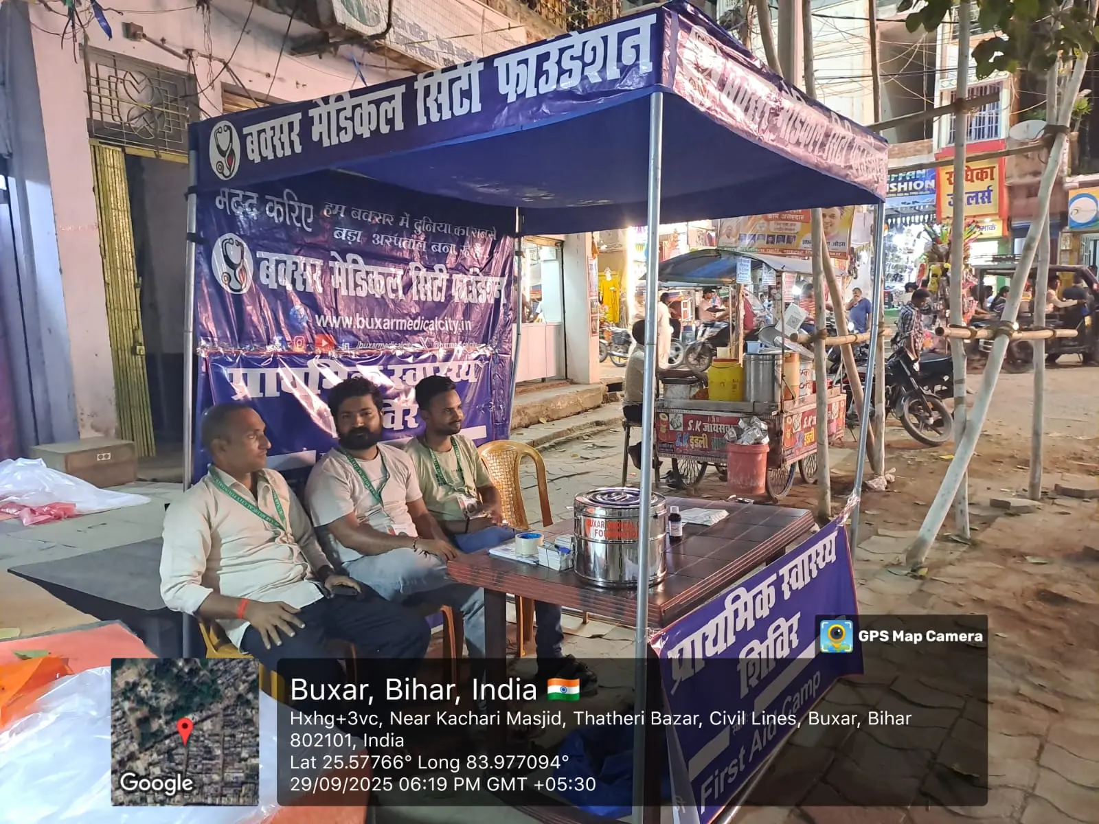 In a heartfelt initiative to ensure community health and safety during the festive season, Buxar Medical City Foundation successfully organized a First Aid Camp from September 29 to October 2, 2025, at Thatheri Bazar, Buxar, on the auspicious occasion of Durga Puja 2025.